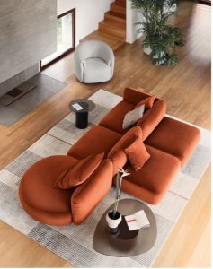 The Ginza Sofa captures the essence of modern comfort with its soft, flowing lines and 1970s-inspired organic curves. Its modular design allows for multiple configurations, creating a sense of warmth and sophistication in any space.