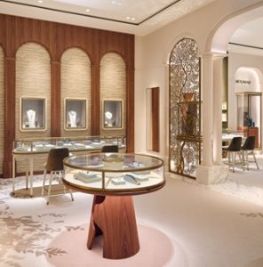 Drawing from Mediterranean architecture, the boutique’s grand arches invite guests into a world where beauty meets achievement, symbolizing the passage from the everyday to the extraordinary and celebrating artistry and aspiration. Soft, sun-kissed terracotta tones reflect the natural warmth of the Mediterranean landscape, infusing the space with intimacy and balance while echoing Mouawad’s timeless elegance.