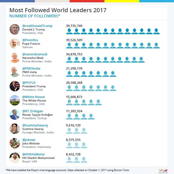 The US President Donald Trump has replaced Pope Francis as the most followed world leader in the list by @Twiplomacy, an account run by the public relations firm Burson-Marsteller.