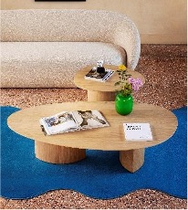 Plautino: A study in balance. These modular coffee tables feature organic, loosely oval tops—the ideal obstacle-free surface for letting ideas (and hospitality) flow freely.