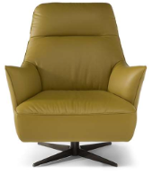 The ANGELICA and CALMA armchairs combine steel-grey and thyme leather tones with ergonomic designs and swivel functionality, elevating any lounge setting.