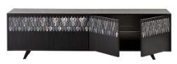 Adding depth to the lineup, the GRANADA Sideboard pairs Canaletto walnut with dark oak bronze glass doors, while the sculptural FLAMINGO Sideboard introduces a dramatic touch with its sleek black painted glass