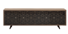 Adding depth to the lineup, the GRANADA Sideboard pairs Canaletto walnut with dark oak bronze glass doors, while the sculptural FLAMINGO Sideboard introduces a dramatic touch with its sleek black painted glass