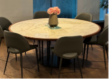 Inspired by monolithic structures, the table features a sculpted top that seems to float above its “leaf-cut” legs, creating a perfect balance of form and weight. Elegant, simple, and striking, Plauto is a statement piece for any space.