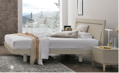 The Kryzia bed featuring textured open-pore Madreperla with refined cream inserts, and the elegant Medea bed crafted in tobacco ash. Each piece reflects Tomasella’s signature attention to detail, elevated materials, and timeless Italian aesthetics.