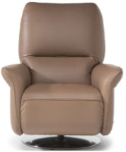 The ANGELICA and CALMA armchairs combine steel-grey and thyme leather tones with ergonomic designs and swivel functionality, elevating any lounge setting.