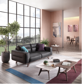 Bold and unapologetically modern, the Adrenalina sofa is a sleek masterpiece with round edges and striking stitches. Its wooden structure and legs evoke a contemporary modernist look, ideal for any living space.