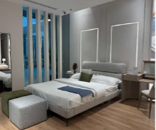 The Galattico bed is all about elegance, featuring pleated stitching inspired by celestial bodies, adding a touch of exclusivity to any bedroom.